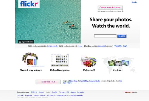 Flickr nos permite compartir nuestros álbumes con otros usuarios, etiquetar las fotos para las búsquedas, comentar imágenes de nuestros contactos, así como que otros comenten las nuestras. También se pueden buscar las fotografías por fechas y protegerlas por licencias Creative Commons.