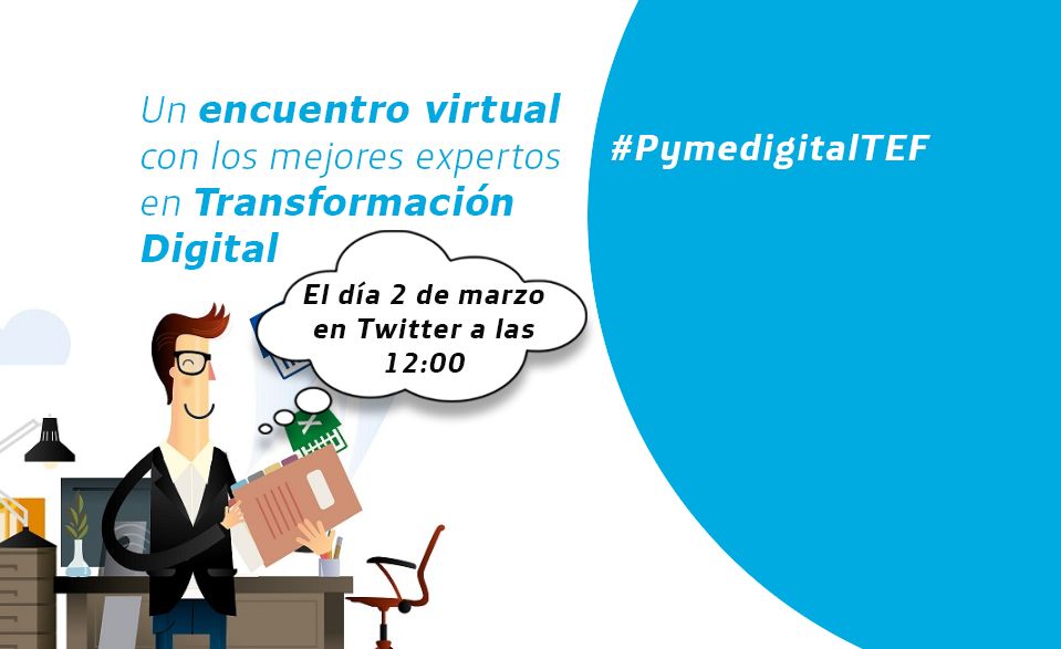 Si estás interesado, puedes hacernos ya preguntas y proponernos temas que te gustaría que se tratasen en esta jornada. Para ello, déjanos tu mensaje en Twitter con el hashtag #pymedigitalTEF y el día 2 de marzo responderemos a todas las cuestiones planteadas.