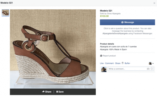 Imagen: Facebook Shop en la Página de Facebook de Dona Alpargata