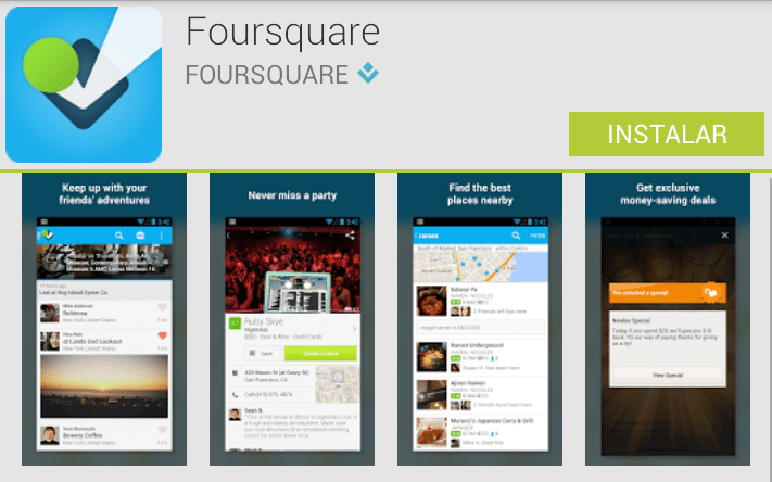 Foursquare es un servicio basado en localización web aplicada a las redes sociales. La geolocalización permite localizar un dispositivo fijo o móvil en una ubicación geográfica (Wikipedia). Es quizás una de las herramientas más populares de geolocalización, tanto que a veces se confunde con el propio concepto.