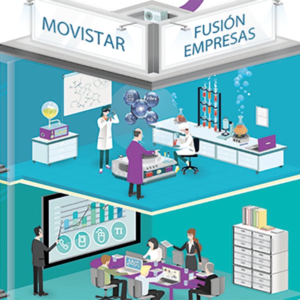 Movistar Fusión Empresas incluye fibra simétrica a 300 Mb, punto de partida en la transformación digital de las empresas, junto con un equipamiento adicional en las instalaciones de la oficina, que refuerza la conexión WiFi, garantizando el 100% de la velocidad que ofrece la fibra simétrica.
