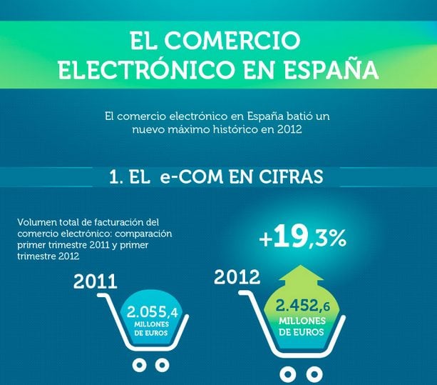 Según los datos del último Informe sobre la Sociedad de la Información en España, elaborado por Fundación Telefónica, en nuestro país se han producido casi un 20% más de operaciones de e-commerce en 2012 que en 2011. Hay ya 27 compradores online por cada 100 habitantes. Esta evolución también se observa en el Informe sobre comercio electrónico 2012, de la CMT (Comisión del Mercado de las Telecomunicaciones) y en el estudio La presencia del ecommerce entre las pymes españolas, de Google. Ello significa que el mundo online cada vez abre más oportunidades de negocio. En esta infografía recopilamos los datos más relevantes: