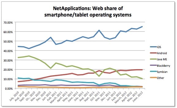 Que iOS y Android compiten en todo lo relacionado con sistemas operativos y dispositivos móviles se refiere es un hecho y es que no se han convertido en los dos grandes así como así. Esta vez le toca el turno a la navegación web y el ganador es… ¡iOS! con un 65,2%.