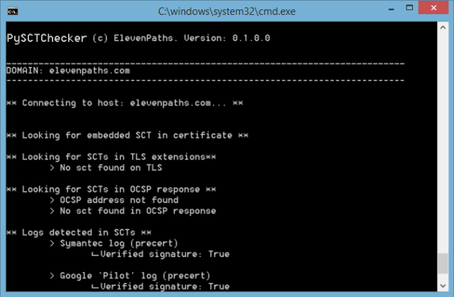 Nueva herramienta: PySCTCheckerElevenPaths 3 julio, 2017 Esta nueva herramienta es un script “quick and dirty” que permite comprobar si un dominio implementa correctamente Certificate Transparency. Además, si lo implementa, es posible comprobar si lo hace correctamente en el lado del servidor. Cuando un servidor implementa Certificate Transparency, debe ofrecer al menos un SCT (una prueba de la inclusión del certificado TLS del servidor en un log de transparencia. El servidor puede ofrecer el un SCT por tres diferentes vías: Incrustado en el certificado Como una extensión TLS Vía OCSP Stapling Utilizando PySCTChecker es posible identificar mediante qué vías ofrece el servidor los SCT y a qué logs de CT se ha enviado el certificado. Además, es posible comprobar si los SCT ofrecidos son válidos y están legítimamente firmados por los logs a los que pertenecen. El script solo necesita como entrada una lista de dominios. Para cada uno de estos dominios, comprobará si implementa correctamente Certificate Transparency. Si el servidor ofrece algún SCT, el script mostrará información extra como por ejemplo porqué vía lo ofrece el servidor y los logs a los que se ha enviado el certificado. Uso: python PySCTChecker/ct_domains_sct_checker.py [domain1 domain2 …] Ejemplo de salida: Esta es una implementación “quick and dirty” puesto que se apoya en OpenSSL para ciertas funcionalidades, pero esperamos que permita entender mejor cómo funciona certificate transparency. El código se puede descargar y comprobar desde aquí. Esta herramienta viene a complementar nuestro conjunto de herramientas relacionadas con certificate transparency desarrollado desde ElevenPaths: ElevenPaths crea un addon para hacer Firefox compatible con Certificate Transparency Nuevo plugin para FOCA: SCT Checker Innovación y laboratorio www.elevenpaths.com Qué hemos presentado en Security Day 2017 (VIII): Hack your attitude, entrega de premios del concurso de plugin Latch 2016Agenda de eventos en julio para estar al día en Seguridad Informática