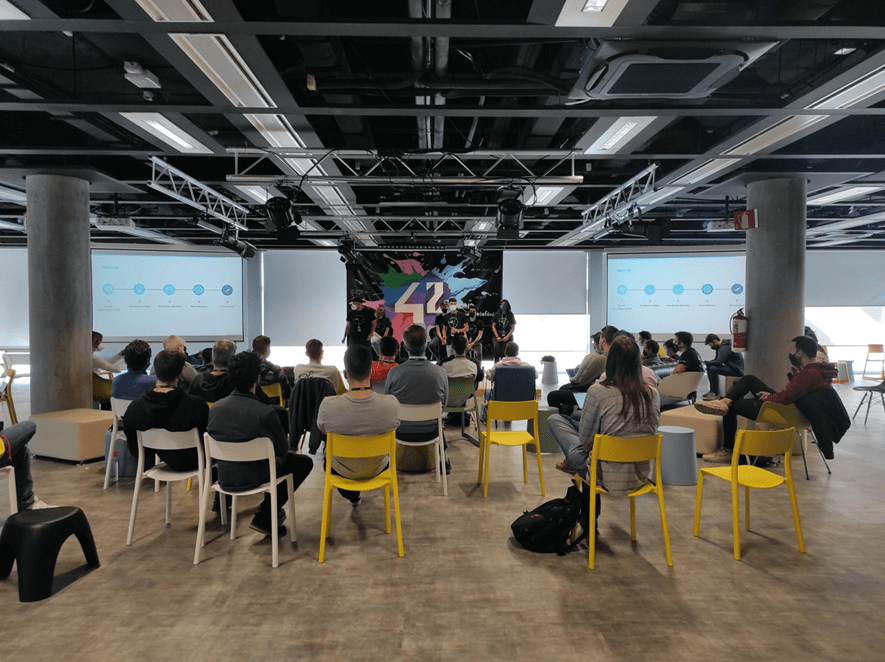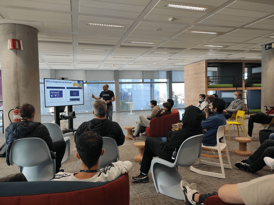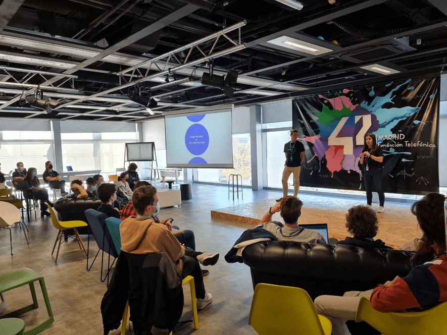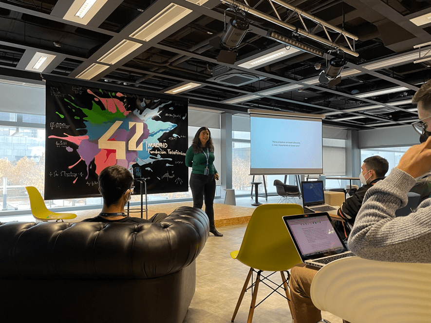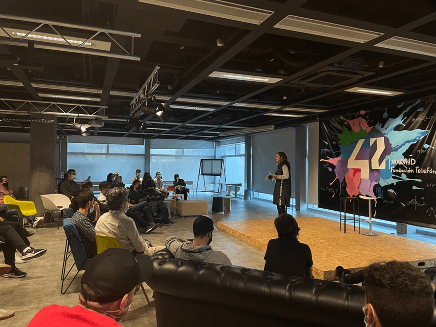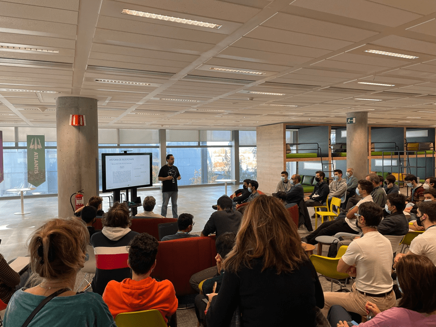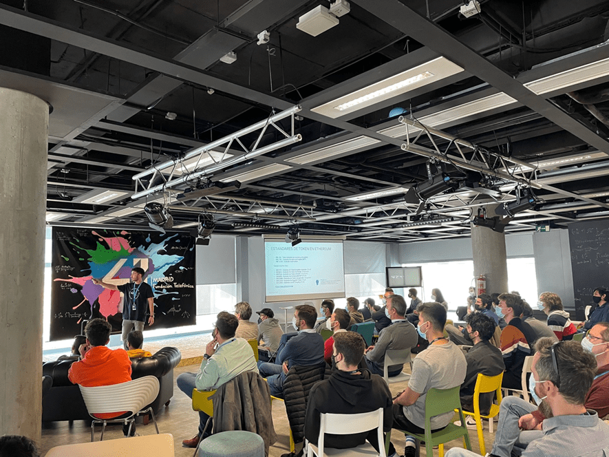 42 Token Week, una semana de Blockchain y tokenizaciónCésar Rodríguez Cerro 15 diciembre, 2021 Este año, y después de que en 2020 no se organizara ningún evento presencial en la escuela 42 Madrid por motivos pandémicos obvios, el equipo de Blockchain de Telefónica Tech volvíamos con más ganas que nunca organizando la 42 Token Week en el mes de noviembre. Como podéis averiguar por el nombre, la temática de esta semana fue la tokenización dentro del ecosistema Blockchain, pero tanto alumnos como empleados de Telefónica también pudieron nutrirse de una serie de charlas y dinámicas bien interesantes. El motivo de organizar este evento en base a la tokenización ha sido principalmente el boom que ha experimentado este último año, sobre todo con los famosos NFTs o Non-Fungible Tokens. La capacidad de poder representar valor de forma digital es la clave de este éxito y si, además, ese valor puede asociarse a una entidad de forma unívoca y es transferible, el potencial de los NTFs es brutal e imparable. En el mundo de la tokenización existen diferentes tipos de tokens para poder abarcar el mayor conjunto posible de representaciones de valor, pero en esta semana nos centramos en tokens no fungibles y fungibles, ya que podemos afirmar que son los más demandados actualmente. Si quieres saber cómo discurrió la semana, sigue leyendo que te lo cuento. Lunes 15 de noviembre Tras una pequeña presentación de Jorge Ordovás, responsable del equipo de Blockchain de Telefónica Tech, el encargado de calentar motores fue Alberto García, especialista Blockchain, con una charla de tokens fungibles y un taller práctico que creó mucha expectación. Los participantes pudieron conocer los fundamentos de Ethereum que permiten la tokenización de valor en un entorno accesible y descentralizado. Después de la teoría, llegó el momento de tirarse al barro y ensuciarse un poco con las entrañas de Ethereum. Nos fuimos todos a los clústeres y los asistentes emitieron su propio token y lo intercambiaron entre sí a través de un Smart Contract desplegado en la red. Con los tokens emitidos y custodiados en las correspondientes wallets de cada participante, llegaba el momento de presentación de la Gymkana que María Teresa Nieto elaboró con entusiasmo y dedicación. Quizás estos fueron los motivos por los que algún participante sufrió de dolores de cabeza a la hora de resolverla, pero nadie dijo que fuera sencillo. Sin embargo, la complejidad no hizo que Raquel Cuesta Barberá tirara la toalla y tras romperse la cabeza durante unos días, conseguía resolverla el jueves a primera hora. Los asistentes podían elegir entre participar en la Gymkana o luchar por conseguir ser los más avanzados en Cryptozombies, un curso online que permite aprender a implementar Smart Contracts en Ethereum, concretamente en el lenguaje de programación Solidity. Rubén Gallego fue el que consiguió llegar más lejos en el curso en el tiempo establecido y, tras unas preguntas técnicas de sus propios compañeros que lo corroboraron, se convirtió en ganador con una camiseta de 42 como premio. Por la tarde llegaba el turno de Pilar Cantarero, Technical Program Manager for B2B Big Data, IA and IoT en Telefónica Tech, con su charla “Fail Fast, Fail Early, Fail Often”, que nos enseñó que no hay que tener miedo a lanzarse, a probar e, incluso a veces, a equivocarse para aprender y seguir hacia delante mejorando, eso sí, de forma rápida. El cierre del primer día en cuanto a charlas lo ponía Cristina Martínez, Head Of Legal in Cyber&Cloud en Telefónica Tech, hablando de los aspectos legales que tienen relación con el ecosistema de Blockchain, ya que la tecnología tiene unas implicaciones que deben considerarse obligadamente antes de aplicarla en cualquier proyecto. Martes 16 de noviembre Si en la primera jornada abrimos con tokens fungibles, en la segunda era el turno de los no fungibles o NFTs. Diego Escalona, especialista Blockchain en Telefónica Tech, impartía un taller teórico-práctico en el que hizo un recorrido por los casos de uso y aplicaciones más utilizados y en el que los alumnos crearon su propia colección de cromos y minaron sus primeros NFTs a través también de un Smart Contract desplegado en la red. También contamos con la experiencia de María Teresa Nieto, especialista Blockchain en Telefónica Tech, que nos habló de los problemas de escalabilidad de Ethereum y de las soluciones de segunda capa que surgen para paliarlos. Aprovechando la temática, los alumnos de 42 Madrid y fundadores de Universelle, contaron su experiencia al lanzar este proyecto basado en NFTs tras ser infectados por el virus de la tokenización en la 42 Blockchain Week de 2019. Nos contaron cómo se aventuraron, las miles de complicaciones que tuvieron y cómo consiguieron adentrarse en el mundo de los NFTs sin morir en el intento. Pasión y mucho esfuerzo son los ingredientes que utilizaron y, de esta forma, consiguieron introducir sus NFTs y hacerse eco en una plataforma tan famosa como Decentraland. Como sorpresa, nos regalaron un NFT que emitieron exclusivamente para la 42 Token Week a todos los participantes, menudo detallazo. Por la tarde llegaba de nuevo el turno de las charlas y con Jorge Ordovás nos adentramos en el mundo de las Finanzas Descentralizadas o DeFi. Hizo un recorrido por las bases en las que se apoyan estos servicios y mostró aquellas plataformas más utilizadas hoy en día como decentralized exchanges o las que se sirven de protocolos que ofrecen préstamos y depósitos. Alfonso de la Rocha, excompañero del equipo de Blockchain e investigador en Protocol Labs, cerraba el día con una charla más que interesante sobre la Web 3.0. Nos habló de IPFS y Filecoin, protocolos para almacenar y compartir datos en la web distribuida, y de cómo están trabajando en aplicar el paradigma de la descentralización para transformar la web que conocemos. Fue un placer tenerte de nuevo por Tel