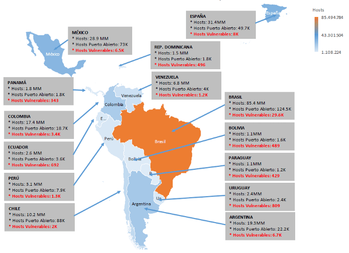 Teletrabajo y pandemia: un análisis práctico respecto a la vulnerabilidad BlueKeep en España y LatinoaméricaAndrés Naranjo 28 octubre, 2020 No es la especie más fuerte la que sobrevive, ni la más inteligente, sino la que responde mejor al cambio. Charles Darwin Uno de los mayores y más rápidos cambios acontecidos en la historia reciente de la humanidad es esta “nueva normalidad” que ha traído la pandemia de la Covid-19 desde el pasado mes de marzo. En este cambio, la mayoría de las empresas tuvo que gestar un modo de mantener su actividad al precio que fuese, al menos en la medida de lo posible. Esto, que no es fácil, sabemos además que es crítico siempre que hablamos de empresas tecnológicas: vemos muchas empresas cuyo éxito y fuerza anterior de nada les ha servido para afrontar el actual escenario de mercado o financiero. Han pasado del mayor de los éxitos (su fuerza anterior) al más estrepitoso de los fracasos. No adaptarse al cambio puede significar ser sentenciado a muerte o a una larga agonía. Recordemos el caso de Nokia, por ejemplo: a primeros de siglo, cómodamente asentada en el trono hegemónico de la telefonía móvil tanto por producción como por reputación; hoy, sólo una pequeña sombra de lo que fue, tras la llegada de los smartphones. Pero volviendo a marzo de 2020, como decíamos, las empresas de la mayoría de países que han sufrido un confinamiento han debido disponer de medios para mantener su actividad. Y, a menudo, estos procesos tan urgentes nunca tienen en cuenta las medidas de protección necesarias. En buena parte, esta adaptación ha significado habilitar la posibilidad del teletrabajo, que, según parece por los movimientos de los distintos gobiernos a regular esta modalidad laboral, ha llegado para quedarse. Pero, como demostraremos, esta capacidad para gestionar en remoto y/o habilitar el teletrabajo ha significado un mayor número de activos expuestos a vulnerabilidades sobradamente conocidas. La vulnerabilidad BlueKeep El estudio que se presenta se basa en la vulnerabilidad CVE-2019-0708, una vulnerabilidad bautizada como BlueKeep, de ejecución remota de código en Remote Desktop Services (anteriormente conocido como Terminal Services) cuando un atacante no autenticado se conecta al sistema de destino mediante RDP y envía peticiones especialmente diseñadas. Esta ejecución remota de código puede significar el control y compromiso total del sistema. El motivo de estudiar precisamente esta vulnerabilidad es porque el protocolo RDP habilita un acceso remoto fácilmente, tan sólo con abrir el puerto 3389 a la máquina deseada. Pero cada puerto abierto, como sabemos, es un vector de entrada, sobre todo en el caso de que no se hayan tomado las medidas básicas de protección de los sistemas. Además, no es una vulnerabilidad especialmente reciente (data de mayo de 2019) y también debemos tener en cuenta que afecta a sistemas operativos obsoletos de Microsoft XP, Vista, Windows Server 2008 que no estén debidamente actualizados. En el estudio ha colaborado César Farro, que ya en mayo del año pasado publicó el primer estudio de exposición respecto a BlueKeep. Para este menester se han usado herramientas públicas como masscan y rdpscan, ambas escritas por Robert Graham. Estudio de la vulnerabilidad BlueKeep – Mayo 2019 La metodología para este trabajo ha sido simple: Se ha escaneado el rango de IP’s respecto de cada país usando fuentes públicas donde están publicadas los rangos IPv4 asignados a cada uno, como Lacnic y RIPE.Se han usado las herramientas antes descritas para analizar si el activo expuesto bajo el puerto 3389 abierto es vulnerable. Cabe destacar que el análisis no es determinante y hay un número de activos no diagnosticables, que se detallan como «unknown”.Establecemos una comparativa entre enero 2020 y agosto 2020 para comparar el número de activos con el puerto abierto y extraer conclusiones respecto al nivel de exposición. Veamos, por ejemplo, datos para España antes y después de la pandemia: Tomando como datos los porcentajes, vemos una clara evolución: Para el caso de España, podemos sacar las siguientes conclusiones: Si bien el número de activos con el puerto 3389 casi se ha duplicado, el porcentaje de activos objetivamente vulnerables a esta vulnerabilidad claramente ha bajado de un 11% a un 4% de los activos expuestos.3745 dispositivos se podría considerar todavía un número muy elevado de máquinas fácilmente accesibles y vulnerables por tanto, a un fallo de seguridad publicado hace más de un año.El aumento de los casos etiquetados como desconocidos se debe, principalmente a una corrección de los métodos de consulta desde IP’s desconocidas, y debe atribuirse a una mejor configuración. Esto puede hacerse, por ejemplo, limitando los accesos RDP a unas IP’s determinadas, lo cual redunda en un acceso más seguro. Puedes consultar todos los datos respecto a los 12 países en estudio en resumen en la siguiente tabla: En resumen La nueva normalidad impuesta por la pandemia ha forzado a numerosas empresas y organismos a habilitar recursos de acceso remoto para mantener su actividad. Pero, como todo cambio, esto ha de hacerse manteniendo nuestra estrategia de seguridad para garantizar también la continuidad de negocio. El uso de RDP u otros métodos de acceso remoto deben ser planificados y ejecutados siempre desde la seguridad por diseño para que nuestra adaptación a este cambio se lleve a cabo sin poner en riesgo nuestra entidad. Como consejo, conviene tener correctamente inventariada nuestra lista de activos con sus correspondientes versiones de sistemas operativos y software y/o servicios que corren, vigilando siempre que se mantienen al día respecto a actualizaciones de seguridad. ElevenPaths Radio 3×01 – Entrevista a David Barroso¿Ransomware en pandemia o pandemia del ransomware?