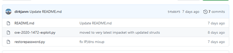 Zerologon, ¡parchea o muere!Nacho Brihuega 1 octubre, 2020 Zerologon. Si te dedicas al mundo IT y no aún no has escuchado este nombre, preocúpate y sigue leyendo. Zerologon es, posiblemente, la vulnerabilidad de este año tan “especial” y seguramente de los últimos. Es una de esas vulnerabilidades que no deja indiferente a nadie. Antes de nada, ¿es crítica la vulnerabilidad? Sí, sí y mil veces sí. Personalmente diría que es la vulnerabilidad más crítica que he conocido desde que entré en este mundo de la ciberseguridad. Comencemos por el principio: Zerologon (CVE-2020-1472) fue descubierto por la empresa Secura en agosto de 2020, el cual fue reportado a Microsoft, quien le asignó un CVSS de 10.0 (sobre 10, la mayor criticidad posible). Posteriormente, el día 11 de septiembre, Secura publicó un advisory y un paper sobre la vulnerabilidad, en el que se incluía una herramienta para detectar máquinas vulnerables. Tras esto, se han publicado numerosas PoC y herramientas que permiten explotar la vulnerabilidad. ¿Por qué es tan crítica esta vulnerabilidad? Porque permite a cualquier usuario (ni siquiera requiere estar en el dominio) con conectividad al DC resetear la contraseña del domain admin. Os animo a leer el detalle que prepararon desde hackplayers sobre este tema. Análisis práctico de Zerologon Una vez vista la teoría, vamos a la práctica. Para testear la vulnerabilidad se ha creado un DC en una máquina virtual, en mi caso la máquina víctima tiene la IP: 192.168.0.21 En primer lugar, una vez se tiene conectividad al DC, se puede usar el script de Secura para testear si el DC es vulnerable. Sin embargo, uno de los parámetros del script es el hostname. Para ello, podemos emplear nmap: O bien se puede hacer uso de una enumeración SMB con Crackmapexec: Y, como se observa pasando ese parámetro junto con la IP, el script nos da como resultado si el DC es vulnerable a Zerologon. Una vez chequeado que es vulnerable, haciendo uso de este repositorio dispone de dos scripts: CVE-2020-14-72-exploit.py: permite automatizar la explotación de la vulnerabilidad.Restorepassword.py: permite restaurar la contraseña. Sin embargo, si lo ejecutamos tal cual, nos encontraremos con este problema de impacket: Para solucionar esto podemos optar por vías: Eliminar impacket y bajar la última versión (puedes consultar esta referencia).Emplear un virtualenv (en este artículo de s4vitar se explica cómo hacerlo). Ahora ejecutándolo de nuevo, funciona: Así mismo, el autor de Mimikatz ya ha actualizado la herramienta para aprovechar esta vulnerabilidad. En este enlace se puede observar el GIF que ha preparado con la PoC. ¿Cómo se puede aprovechar esta funcionalidad? Aprovechando este recurso tenemos el comando tal cual: secretsdump.py -hashes :31d6cfe0d16ae931b73c59d7e0c089c0 'DOMAIN/DC_NETBIOS_NAME$@dc_ip_addr' Siendo en nuestro caso: Obteniendo listar todos los hashes de los usuarios del dominio. A continuación, se podrían crackear los hashes o bien emplear la técnica de Pass the Hash para autenticarse en el DC. Para ello, se puede usar pth-winexe o evil-winrm con el hash de administrador: Para restaurarla contraseña, tendremos que recurrir al script “restorepassword”: python restorepassword.py <DOMAIN><hostname>@<hostname> -target-ip IP -hexpass 54656d706f7………etc o bien emplear esta funcionalidad. python3 reinstall_original_pw.py DC_NETBIOS_NAME DC_IP_ADDR ORIG_NT_HASH Acordaos de restaurar la password si lo probáis en un algo test de intrusión. Y sobre todo…Parchea, parchea, pachea Recomendaciones Identificar con el script de check de Secura las máquinas vulnerables y aplicar el parche: CVE-2020-1472 | Netlogon Elevation of Privilege VulnerabilityCVE-2020-1472 Detail Referencias Hacking Windows con Zerologon: Vulnerabilidad crítica que puede comprometer tu Domain Controller #ParcheaZerologon desatado: la vulnerabilidad que permite comprometer cualquier controlador de dominio de Windows fácilmente[Blog] Zerologon: instantly become domain admin by subverting Netlogon cryptography (CVE-2020-1472)CCN-CERT AL 09/20 Vulnerabilidad crítica en Windows ServerCVE-2020-1472 | Netlogon Elevation of Privilege Vulnerability #CodeTalks4Devs – Un Macintosh SE con espacio infinito de almacenamiento gracias a Google PhotosNoticias de Ciberseguridad: Boletín semanal 26 de septiembre-2 de octubre