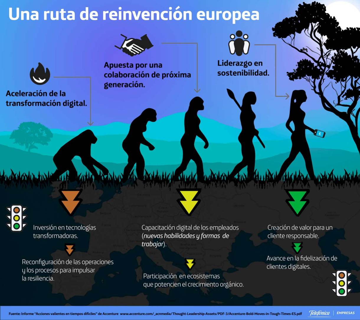 La valentía como ventaja competitivaMercedes Núñez 19 agosto, 2020 El estudio de Accenture “Acciones valientes en tiempos difíciles” pone de relieve que en este momento para mejorar la competitividad europea son necesarios líderes audaces que actúen de forma innovadora, que creen nuevo valor para los clientes y con una estrategia que mejore el crecimiento a largo plazo. Optimismo sobre la recuperación Ante la debacle histórica de las economías de los principales países de la Unión Europea, llama la atención de este informe -fruto de una encuesta realizada entre 500 líderes empresariales de quince sectores en Europa, Norteamérica y Asia Pacífico- que la mayoría de los altos ejecutivos, sobre todo los europeos, vean con optimismo la recuperación del Viejo Continente. Creen que ocurrirá a un ritmo relativamente rápido y, además, consideran que la pandemia servirá para que las empresas europeas incrementen su competitividad. Retos que requieren valentía y pisar el acelerador “El optimismo es importante -apunta el informe- pero estos líderes tienen ante sí una serie de retos con un alcance y a una escala nunca vistos”. Y es que, ante el panorama actual, la valentía puede parecer temeraria pero lo cierto es que el exceso de cautela resulta un lastre para la competitividad europea. Jean-Marc Ollagnier, CEO de Accenture en Europa explica: «Es el momento de pensar y actuar de manera diferente y asumir riesgos calculados para crear una resiliencia a largo plazo, renovar los modelos de crecimiento y adaptarse a lo que llamamos «nueva realidad». Es hora de explorar un nuevo camino basado en la innovación y la tecnología de alto potencial, junto con las fortalezas tradicionales de Europa: sostenibilidad, solidaridad y propósito común». La confianza digital como valor fundamental Llama también la atención sobre la importancia de generar confianza digital como valor fundamental para las compañías en un entorno económico incierto y volátil. «Las organizaciones han de prepararse para un futuro de compromiso digital más que para un futuro de simples transacciones digitales». Tres aspectos claves para la competitividad europea El estudio recoge que es preciso “acelerar” en tres áreas generales: Incrementar la inversión en reforzar la actividad principal y también el futuro del negocio.Implantación de innovaciones progresivas o revolucionarias.Mayor participación en ecosistemas abiertos que sumen capacidades. Riesgos a corto plazo Precisamente estos son algunos riesgos para Europa de cara al corto plazo. Un 53 por ciento de los ejecutivos europeos afirma que está frenando la inversión en innovación y que no relanzará iniciativa alguna en los próximos seis meses. Falta una apuesta decidida por áreas de crecimiento futuro, pues solo una de cada siete empresas europeas está trabajando frente a un repunte. Y, además, los líderes europeos son menos propensos a colaborar con otras empresas de su ecosistema para mitigar el impacto de la crisis. La transformación digital, condición sine qua non Para cerrar la actual brecha de competitividad europea frente a EE. UU. y China, las compañías deben acelerar la transformación digital, aprovechar la tecnología para reinventarse y crear valor para consumidores más responsables. Los hábitos de compra que se han creado durante el confinamiento se van a mantener. A medida que vamos saliendo de los peores momentos de la pandemia, se atisban también nuevas oportunidades, en particular en la transición energética y la revolución sostenible. El informe pone de manifiesto que un menor desarrollo de los sectores tecnológicos penaliza a Europa, pero también la brecha de rentabilidad que se observa en todos los sectores por una menor inversión en tecnología. Llama la atención sobre la importancia de la digitalización de la industria. A partir de ahora, además, las compañías deberán avanzar en la fidelización de clientes más digitales. El COVID-19 los ha obligado a avanzar en este sentido y sus expectativas irán en aumento. Así que la inversión corporativa en experiencias digitales deberá reflejar las nuevas formas de vida (teleconsultas, eLearning, asesoramiento online…). También es un imperativo la capacitación digital de las plantillas, que deben adquirir nuevas destrezas y familiarizarse con nuevas formas de trabajar en aras de la agilidad y la eficiencia. Cloud mejora la resiliencia y facilita la innovación En la nueva normalidad las empresas europeas deben priorizar su transformación digital e invertir en tecnologías transformadoras. Entre ellas, el informe destaca el “viaje hacia cloud”, que mejora la resiliencia de las organizaciones a corto plazo y facilita la innovación, y la inteligencia artificial, así como la necesidad de reconfigurar los procesos y modelos operativos. En la infografía inferior se muestran las seis áreas esenciales para cerrar la brecha de competitividad europea. Infografía: Fernando Rodríguez Cabello y Manuel Carballo Imagen: Steve Crane La educación, ante un reto y una oportunidadIdeas rocambolescas en tiempos de coronavirus